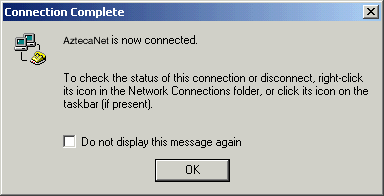 | You have successfully connected to the Internet using